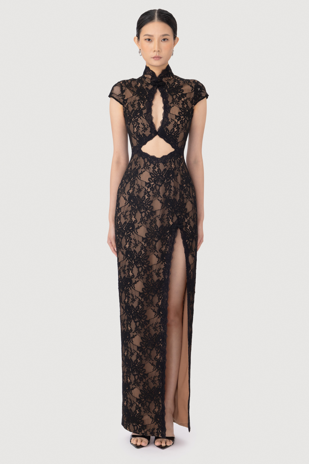 Moira Lace Gown in Black by Sau Lee - RENTAL