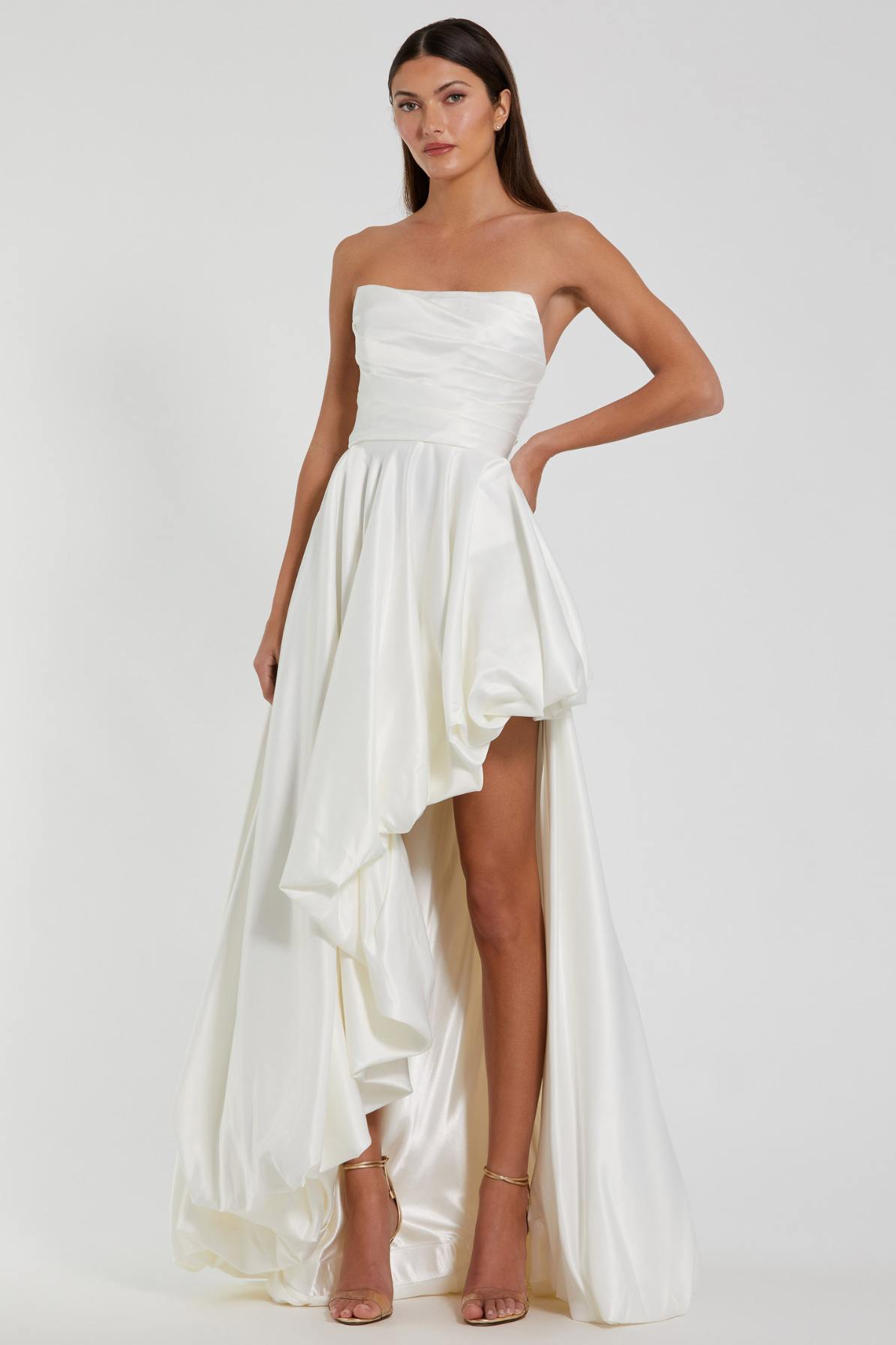 Alexandria Strapless Ruched High Low Gown by Mac Duggal - RENTAL